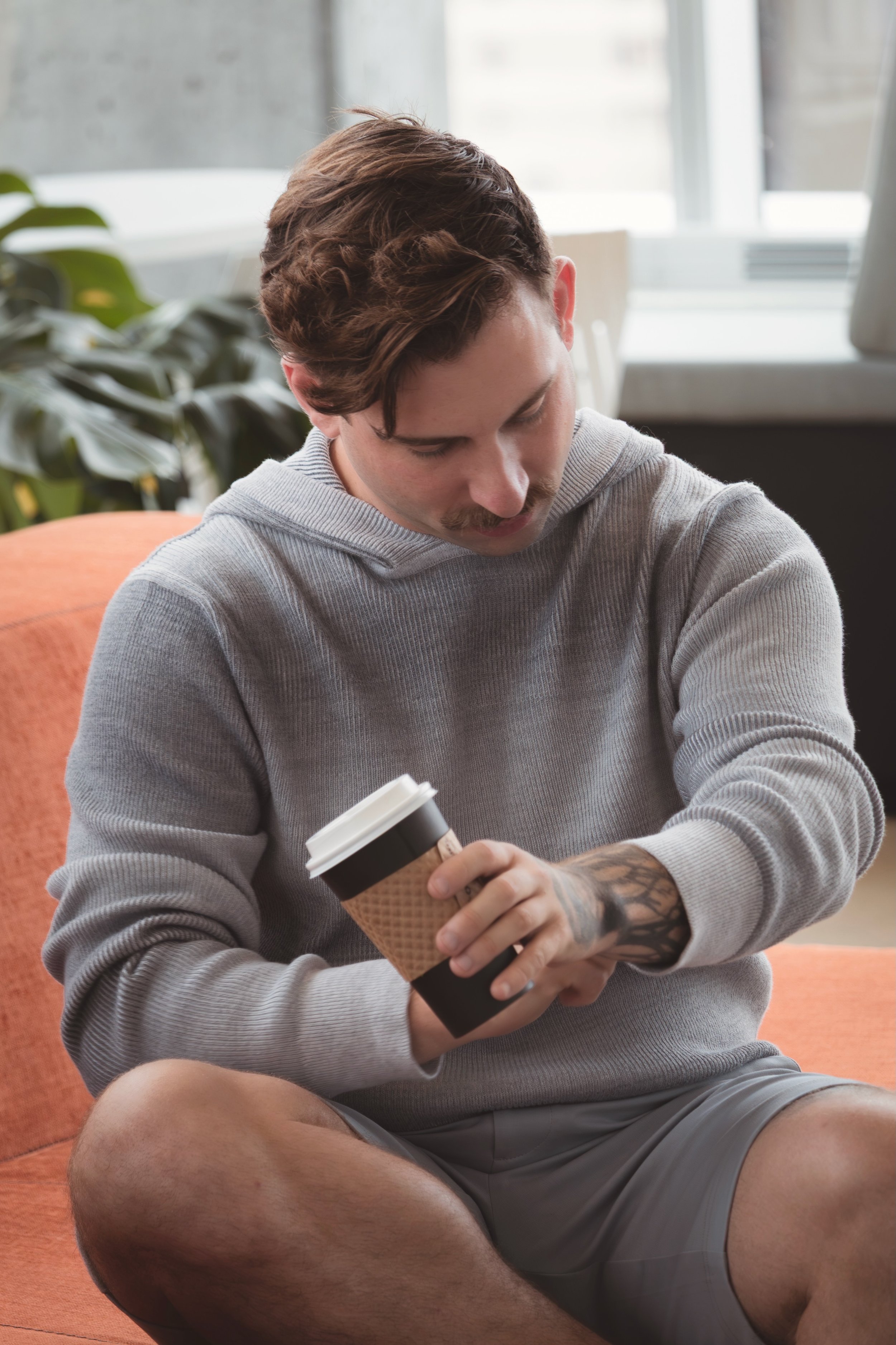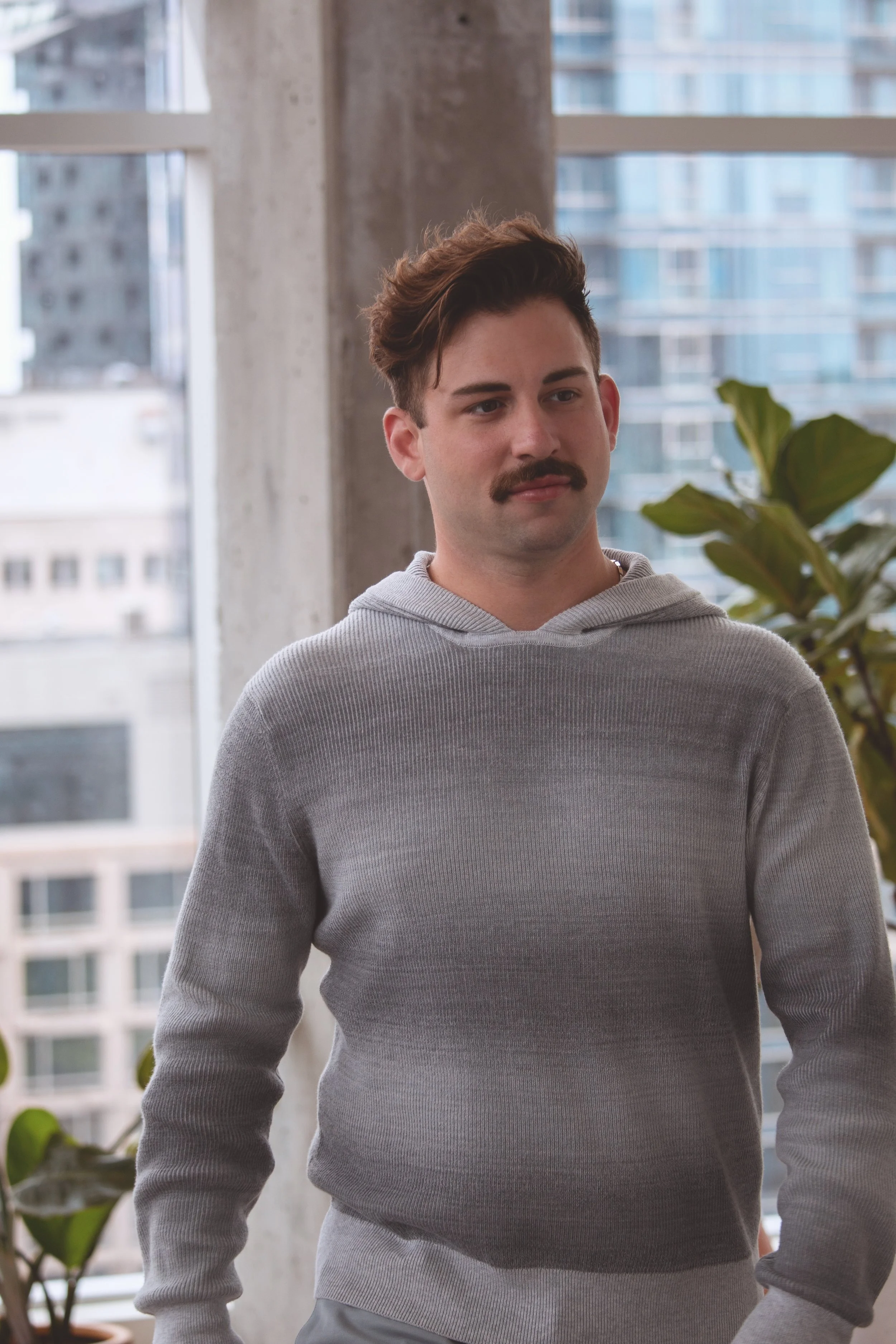 Long sleeve sweater hoodie in space-dye cotton blend yarn!!!